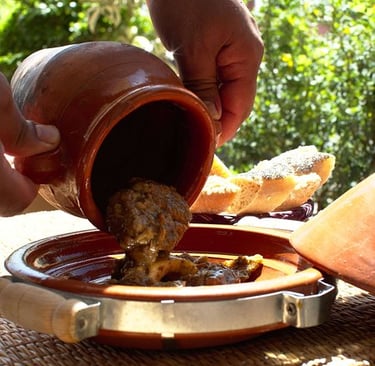 Cette spécialité de Marrakech tire son nom de la jarre dans lequel il est préparé. On y met de la viande et des épices qu'on laisse cuire pendant plusieurs heures dans les braises